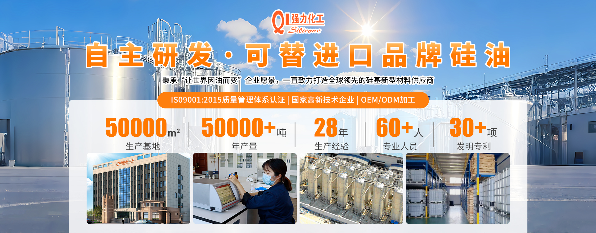 ◎ 黄山市强力化工有限公司是一家专注于有机硅新材料,集研发、生产与销售为一体的综合性高新技术企业。公司已是有机硅行业内较为知名的品牌,倾力于打造高品质有机硅产品:二甲基硅油、乙烯基硅油、氨基硅油、乳化硅油、羟基硅油、含氢硅油与纺织品硅油等。砥砺前行,踔厉奋发,强力纯硅油,更高技术,更好硅油。秉承“让世界因油而变”企业愿景,一直致力打造全球领先的硅基新型材料供应商。
